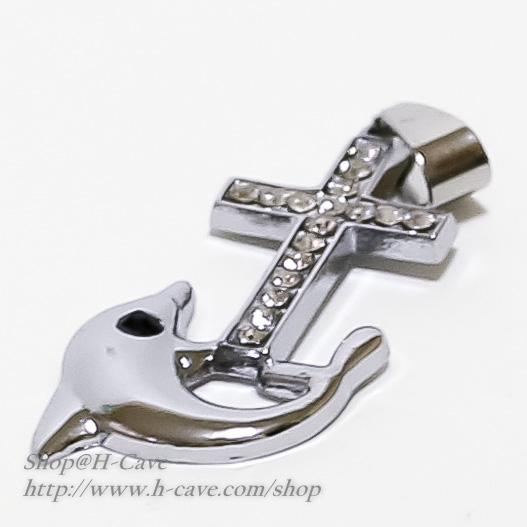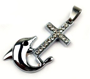 Trendy stainless steel “Dolphin with Cross” shape pendant necklaces.