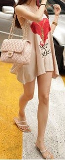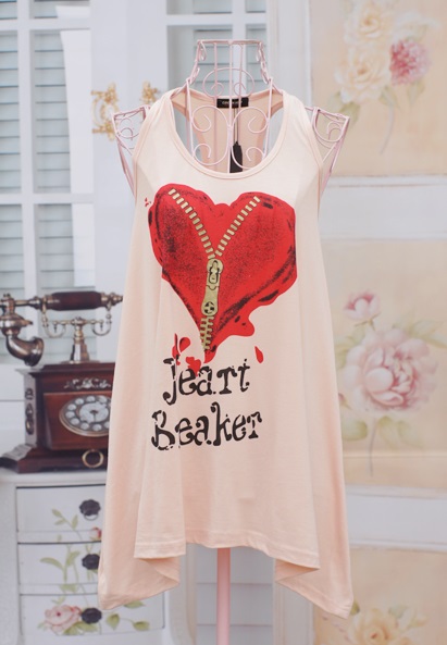 Sleeveless Long T-Shirt Dress with heart print. (Model: W6)